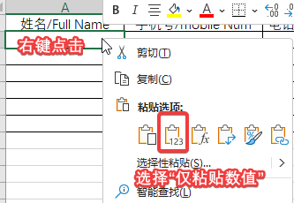 2. 粘贴内容的时候注意:选择只粘贴内容/文字。
